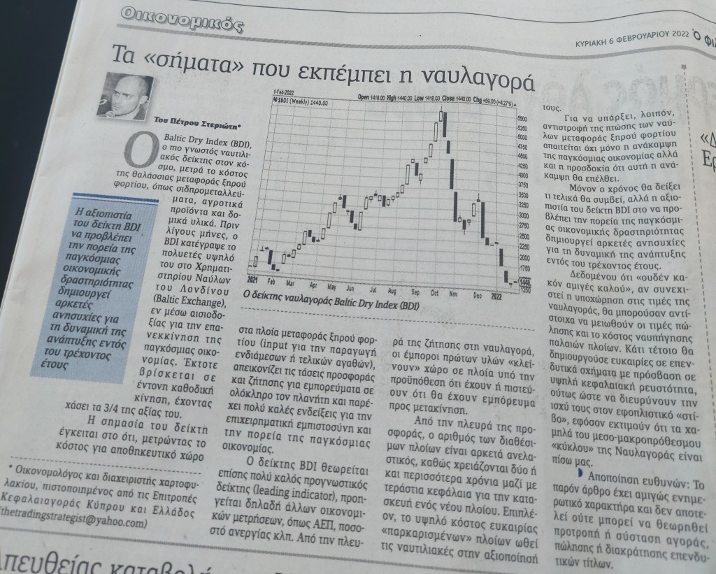 Για να υπάρξει, λοιπόν, αντιστροφή της πτώσης των ναύλων μεταφοράς ξηρού φορτίου απαιτείται όχι μόνο η ανάκαμψη της παγκόσμιας οικονομίας αλλά και η προσδοκία ότι αυτή η ανάκαμψη θα επέλθει. Μόνον ο χρόνος θα δείξει τι τελικά θα συμβεί, αλλά η αξιοπιστία του δείκτη BDI στο να προβλέπει την πορεία της παγκόσμιας οικονομικής δραστηριότητας δημιουργεί αρκετές ανησυχίες για τη δυναμική της ανάπτυξης εντός του τρέχοντος έτους.