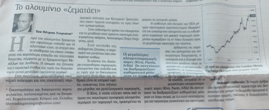 * Οικονομολόγος και διαχειριστής χαρτοφυλακίου, πιστοποιημένος από τις Επιτροπές Κεφαλαιαγοράς Κύπρου και Ελλάδος (thetradingstrategist@yahoo.com)