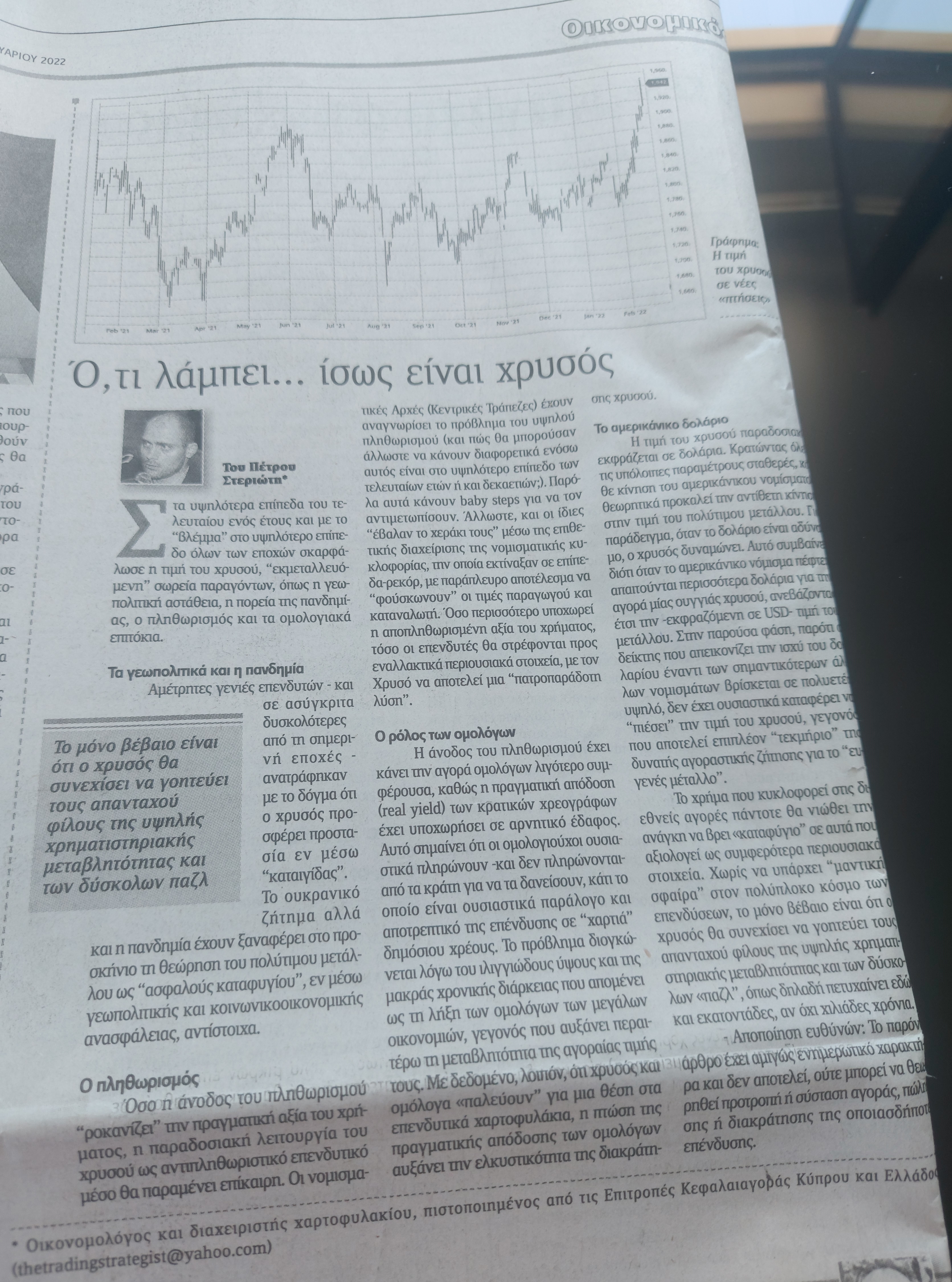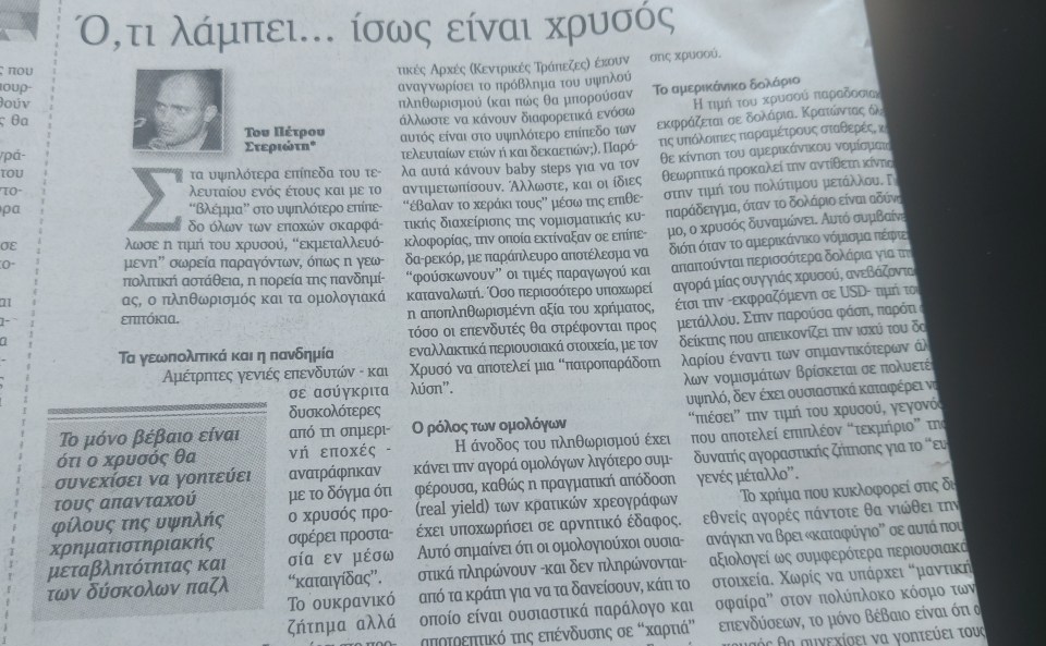 Όσο η άνοδος του πληθωρισμού “ροκανίζει” την πραγματική αξία του χρήματος, η παραδοσιακή λειτουργία του χρυσού ως αντιπληθωριστικό επενδυτικό μέσο θα παραμένει επίκαιρη. Οι νομισματικές Αρχές (Κεντρικές Τράπεζες) έχουν αναγνωρίσει το πρόβλημα του υψηλού πληθωρισμού (και πώς θα μπορούσαν άλλωστε να κάνουν διαφορετικά ενόσω αυτός είναι στο υψηλότερο επίπεδο των τελευταίων ετών ή και δεκαετιών;). Παρόλα αυτά κάνουν baby steps για να τον αντιμετωπίσουν. Άλλωστε, και οι ίδιες “έβαλαν το χεράκι τους” μέσω της επιθετικής διαχείρισης της νομισματικής κυκλοφορίας, την οποία εκτίναξαν σε επίπεδα-ρεκόρ, με παράπλευρο αποτέλεσμα να “φούσκωνουν” οι τιμές παραγωγού και καταναλωτή. Όσο περισσότερο υποχωρεί η αποπληθωρισμένη αξία του χρήματος, τόσο οι επενδυτές θα στρέφονται προς εναλλακτικά περιουσιακά στοιχεία, με τον Χρυσό να αποτελεί μια “πατροπαράδοτη λύση”.