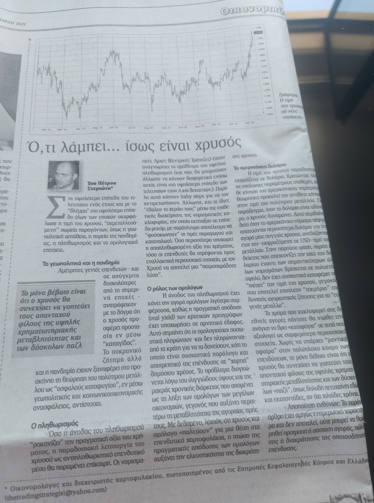 Το χρήμα που κυκλοφορεί στις διεθνείς αγορές πάντοτε θα νιώθει την ανάγκη να βρει «καταφύγιο” σε αυτά που αξιολογεί ως συμφερότερα περιουσιακά στοιχεία. Χωρίς να υπάρχει “μαντική σφαίρα” στον πολύπλοκο κόσμο των επενδύσεων, το μόνο βέβαιο είναι ότι ο χρυσός θα συνεχίσει να γοητεύει τους απανταχού φίλους της υψηλής χρηματιστηριακής μεταβλητότητας και των δύσκολων «παζλ”, όπως δηλαδή πετυχαίνει εδώ και εκατοντάδες, αν όχι χιλιάδες χρόνια.