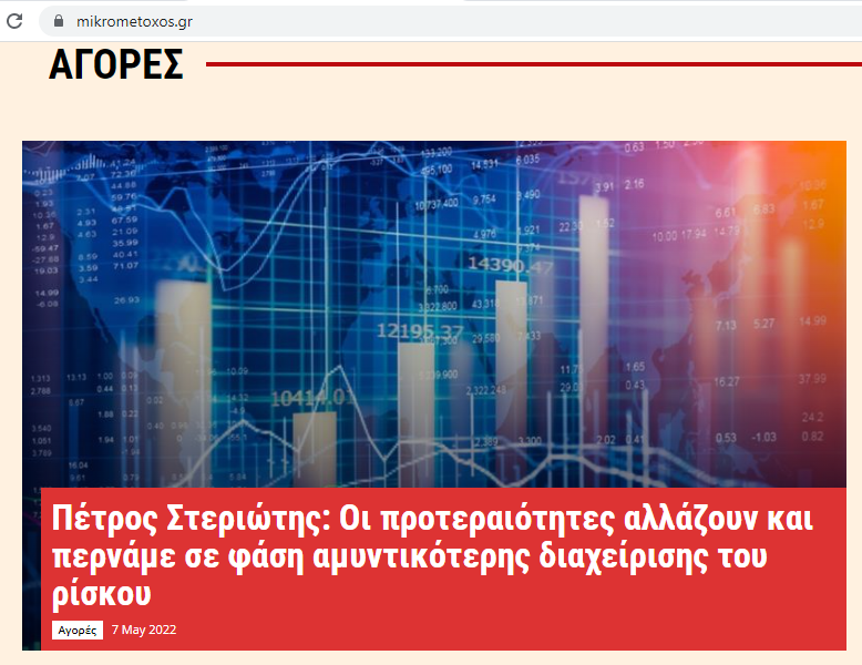 Πέτρος Στεριώτης: Οι προτεραιότητες αλλάζουν και περνάμε σε φάση αμυντικότερης διαχείρισης του ρίσκου