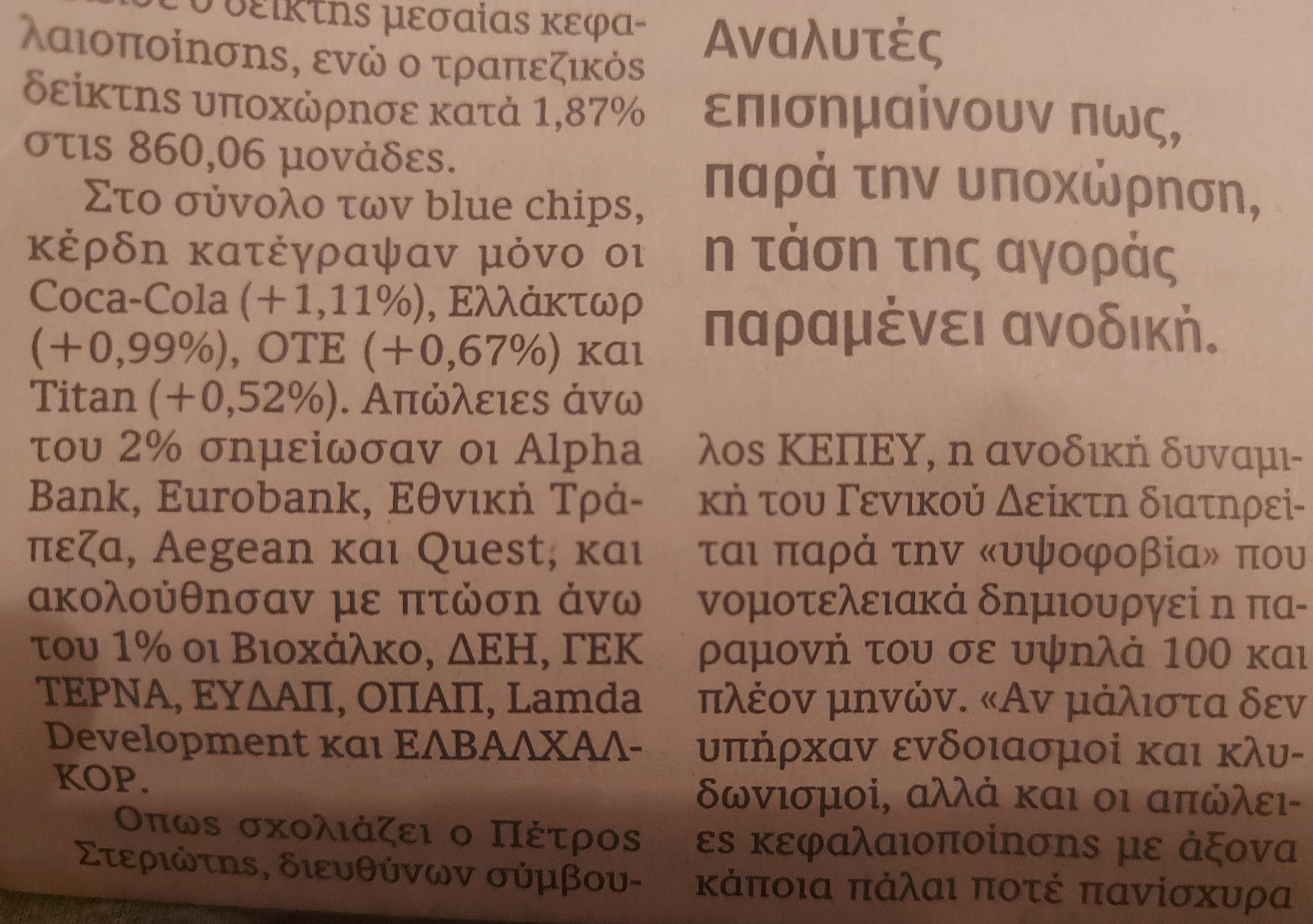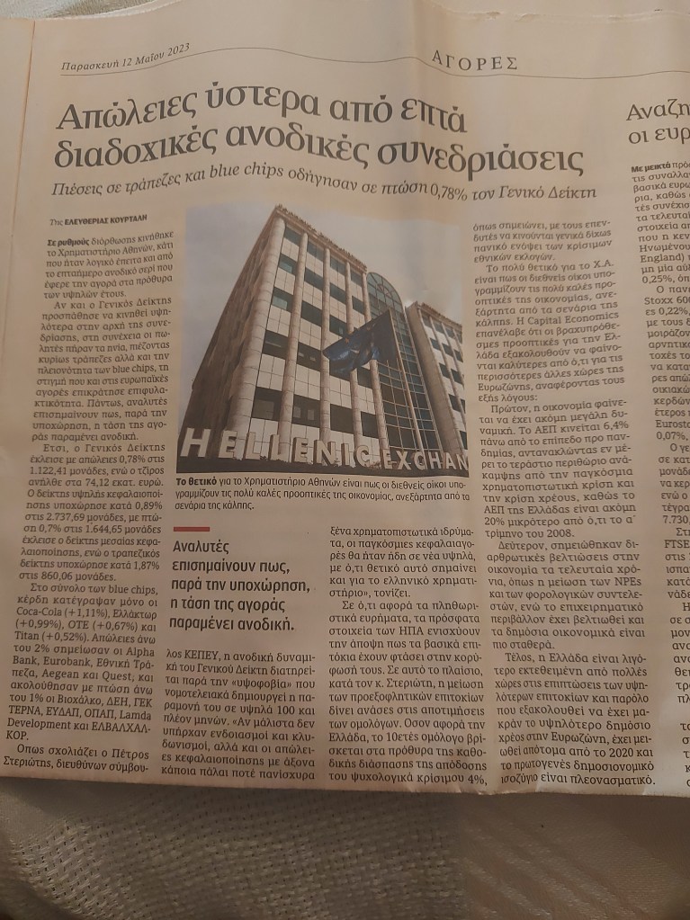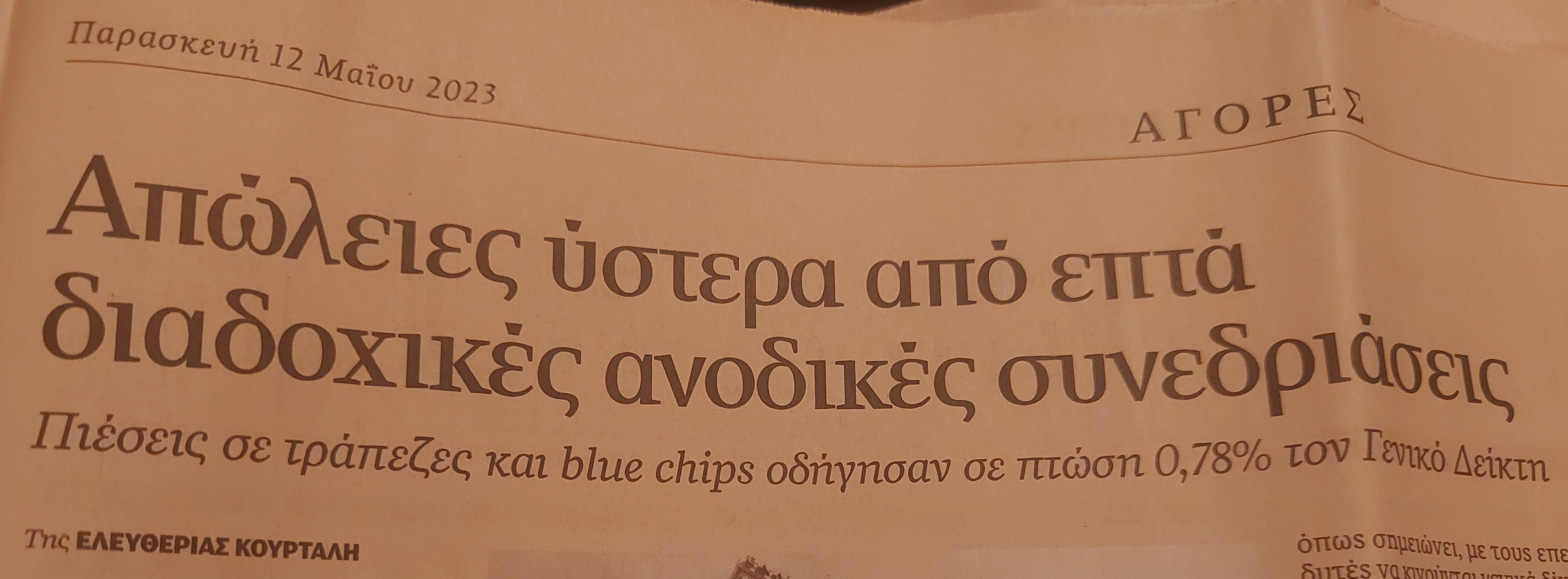 Από την πλευρά του ο Πέτρος Στεριώτης, ανώτατο στέλεχος ΚΕΠΕΥ, υπογραμμίζει τον αντίκτυπο που θα έχει στις ελληνικές μετοχές η περαιτέρω αύξηση των αποδόσεων των ελληνικών κρατικών ομολόγων, ενόψει και της αύξησης των επιτοκίων της ΕΚΤ, που όλα δείχνουν ότι θα πραγματοποιηθεί τον Ιούλιο.