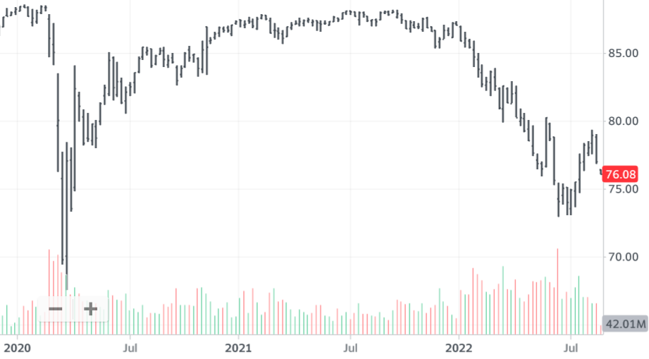 Η φετινή καθοδικότητα των εταιρικών ομολόγων ΗΠΑ σε σχέση με τα πανδημικά τους χαμηλά (πηγή: ETF iShares USD High Yield Corporate Bond).