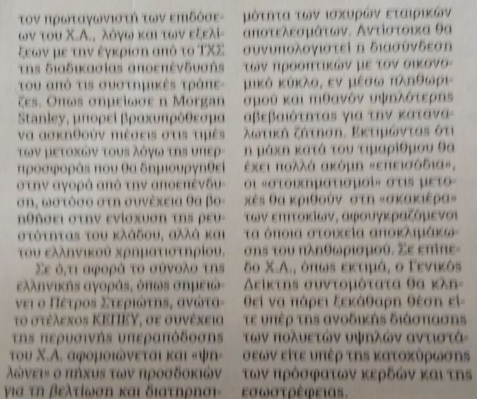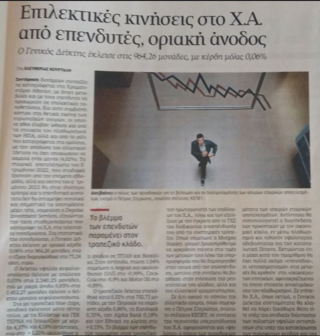 Σε ό,τι αφορά το σύνολο της ελληνικής αγοράς, όπως σημειώνει ο Πέτρος Στεριώτης, ανώτατο στέλεχος ΚΕΠΕΥ, σε συνέχεια της περυσινής υπεραπόδοσης του Χ.Α. αφομοιώνεται και «ψηλώνει» ο πήχυς των προσδοκιών για τη βελτίωση και διατηρησιμότητα των ισχυρών εταιρικών αποτελεσμάτων. Αντίστοιχα θα συνυπολογιστεί η διασύνδεση των προοπτικών με τον οικονομικό κύκλο, εν μέσω πληθωρισμού και πιθανόν υψηλότερης αβεβαιότητας για την καταναλωτική ζήτηση. Εκτιμώντας ότι η μάχη κατά του τιμαρίθμου θα έχει πολλά ακόμη «επεισόδια», οι «στοιχηματισμοί» στις μετοχές θα κριθούν στη «σκακιέρα» των επιτοκίων, αφουγκραζόμενοι τα όποια στοιχεία αποκλιμάκωσης του πληθωρισμού. Σε επίπεδο Χ.Α., όπως εκτιμά, ο Γενικός Δείκτης συντομότατα θα κληθεί να πάρει ξεκάθαρη θέση είτε υπέρ της ανοδικής διάσπασης των πολυετών υψηλών αντιστάσεων είτε υπέρ της κατοχύρωσης των πρόσφατων κερδών και της εσωστρέφειας.
