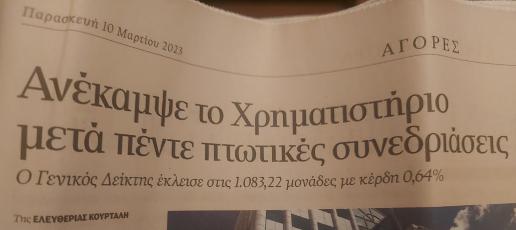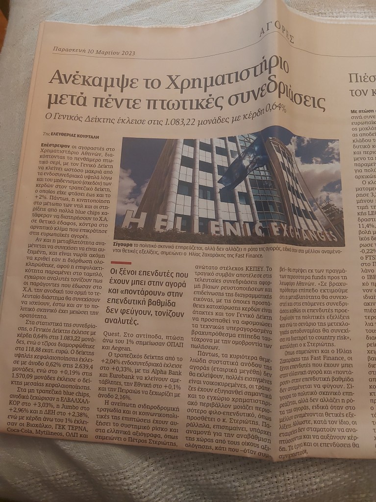 Η ανείπωτη σιδηροδρομική τραγωδία και οι κοινωνικοπολιτικές της επιπτώσεις έχουν αυξήσει το συστημικό ρίσκο και στα ελληνικά αξιόγραφα, όπως σημειώνει ο Πέτρος Στεριώτης, ανώτατο στέλεχος ΚΕΠΕΥ. Το τραγικό συμβάν αποτέλεσε στις τελευταίες συνεδριάσεις αφορμή βίαιων ρευστοποιήσεων και επιδείνωσης της διαγραμματικής εικόνας, με τις όποιες προσπάθειες κατοχύρωσης κερδών είναι άτακτες και τον Γενικό Δείκτη να προσπαθεί να αφομοιώσει τα τεχνικώς υπεραγορασμένα βραχυπρόθεσμα επίπεδα ταυτόχρονα με την ομοβροντία των πωλήσεων.