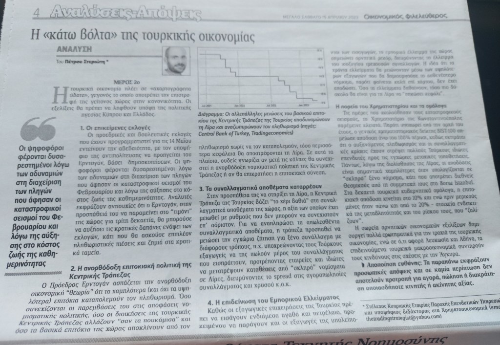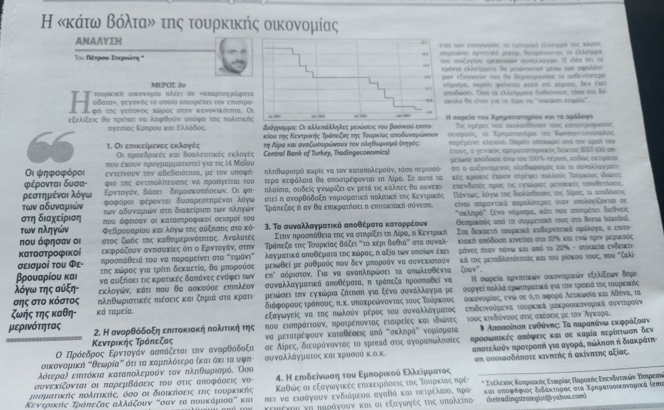 Η τουρκική οικονομία πλέει σε «αχαρτογράφητα ύδατα», γεγονός το οποίο αποτρέπει την επιστροφή της γείτονος χώρας στην κανονικότητα. Οι εξελίξεις θα πρέπει να ληφθούν υπόψη της πολιτικής ηγεσίας Κύπρου και Ελλάδος.