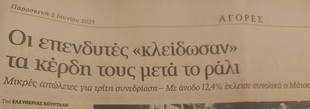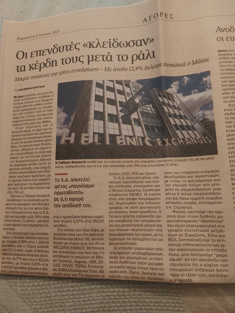 «Φυσικά, εφιστούμε την προσοχή όλων στους διεθνείς μακροοικονομικούς “σκοπέλους” που έχουν επανεμφανιστεί στα γραφεία στατιστικών μετρήσεων σε Ευρωζώνη, Κίνα και ΗΠΑ. Συνυπολογίζουμε τη γενικότερη ανθεκτικότητα των ξένων κεφαλαιαγορών σε επίπεδο έτους, αλλά διατηρούμε “μικρό καλάθι” για την αισιοδοξία των επενδυτών ότι ο κύκλος των επιτοκιακών αυξήσεων βαίνει προς το τέλος του», καταλήγει ο αναλυτής.