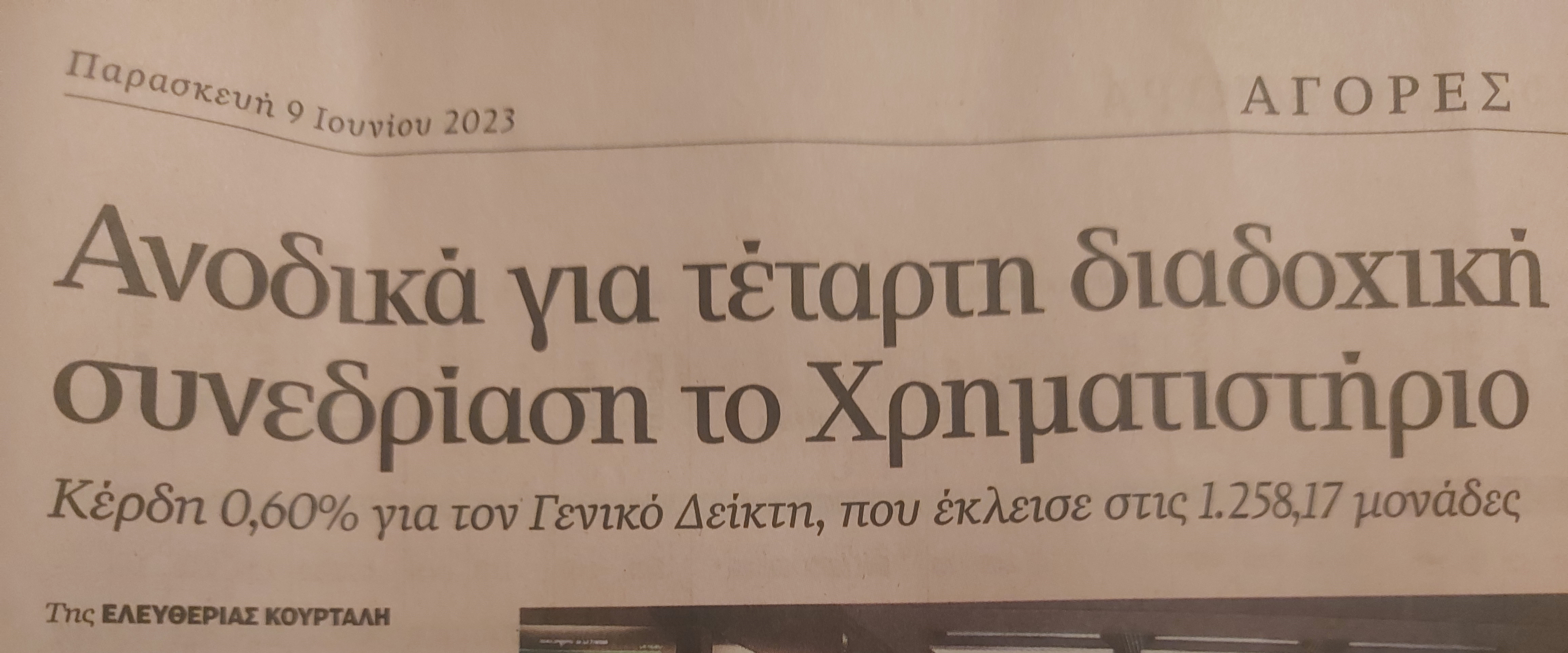 Κατά τον κ. Στεριώτη, οι τιμές-ρεκόρ Γενικού και κλαδικών δεικτών και επιμέρους τίτλων λαμβάνουν επιπλέον επιβεβαίωση από το ελληνικό δεκαετές ομόλογο, το οποίο αρχίζει να σκιαγραφεί μια εθνική οικονομία υψηλής αξιοπιστίας και δυνατοτήτων. Οπως εκτιμά, η πολυαναμενόμενη αναβάθμιση έχει ενσωματωθεί σε μεγάλο βαθμό στη θεμελιώδη εικόνα του Χ.Α., η αγορά όμως καλείται να συνεχίσει να πείθεται για τις μεσο-μακροπρόθεσμες προοπτικές των εισηγμένων, καθώς καραδοκεί το σενάριο «αγόρασε τη φήμη, πούλησε στην επιβεβαίωσή της».