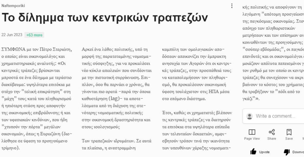 Σε κάθε περίπτωση, ο πληθωρισμός αποτελεί μία Λερναία Ύδρα, που δεν επιτρέπει στις νομισματικές Αρχές τον εφησυχασμό, με ό,τι αυτό συνεπάγεται για την μελλοντική αξία του χρήματος και την αποτίμηση των χρηματιστηριακών επενδύσεων.