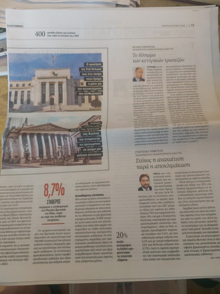 Στον απόηχο των πληθωριστικών μετρήσεων και των επίσημων ανακοινωθέντων της προηγούμενης «σούπερ εβδομάδας», οι παγκόσμιοι επενδυτές και οι οικονομολόγοι δεν μοιάζουν απόλυτα πεπεισμένοι για το ρυθμό με τον οποίο οι Κεντρικές Τράπεζες θα συνεχίσουν να ακριβαίνουν το κόστος του χρήματος ή θα τραβήξουν το «πόδι από το γκάζι».