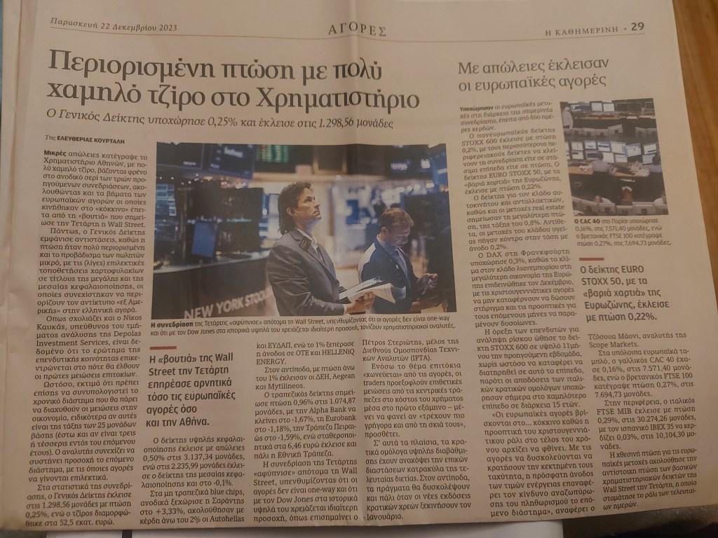 Δημοσιεύτηκε την 12 Μαΐου 2024 «Η Καθημερινή» (έντυπη έκδοση) (22/12/2023) Κοινοποίηση: Μοιραστείτε στο X(Ανοίγει σε νέο παράθυρο) Χ Mοιραστείτε στο Facebook(Ανοίγει σε νέο παράθυρο) Facebook Μου αρέσει! Φόρτωση...