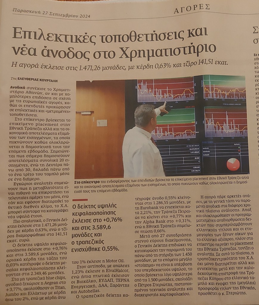 Δημοσιεύτηκε την 6 Οκτωβρίου 2024 «Η Καθημερινή» (έντυπη έκδοση) (27/9/2024) Κοινοποίηση: Μοιραστείτε στο X(Ανοίγει σε νέο παράθυρο) Χ Mοιραστείτε στο Facebook(Ανοίγει σε νέο παράθυρο) Facebook Μου αρέσει! Φόρτωση...