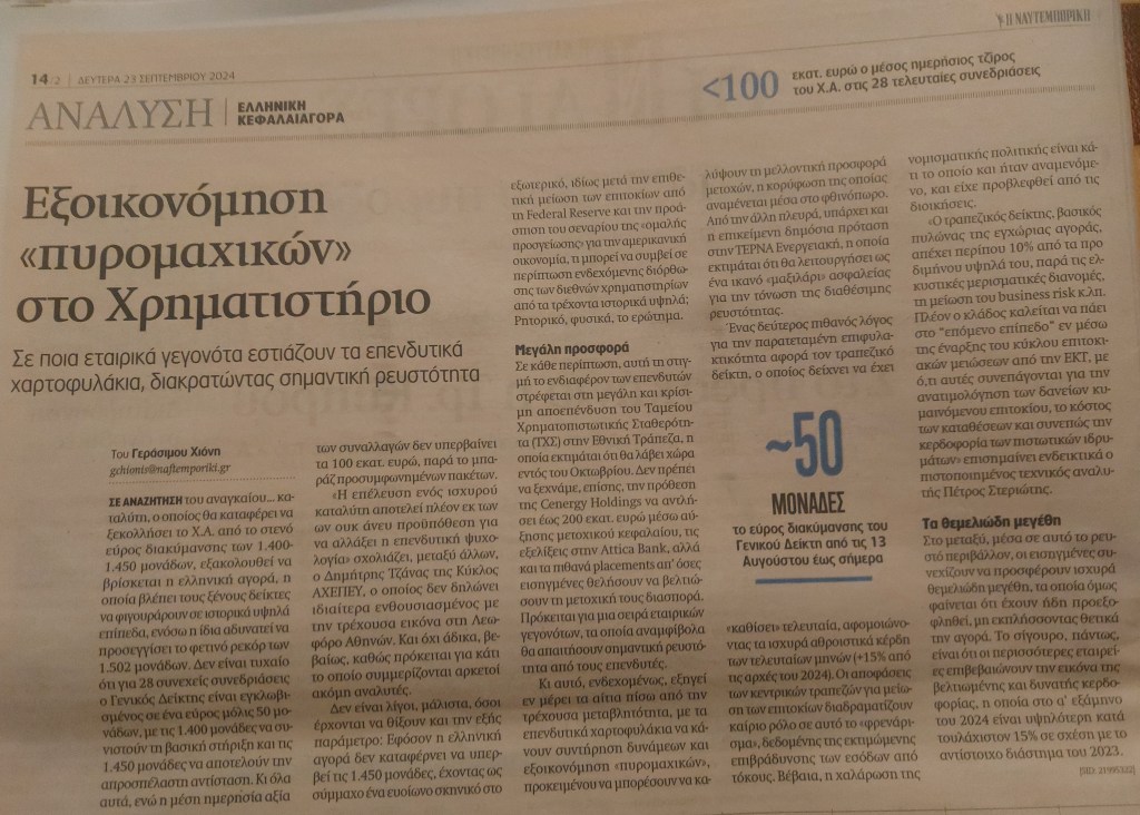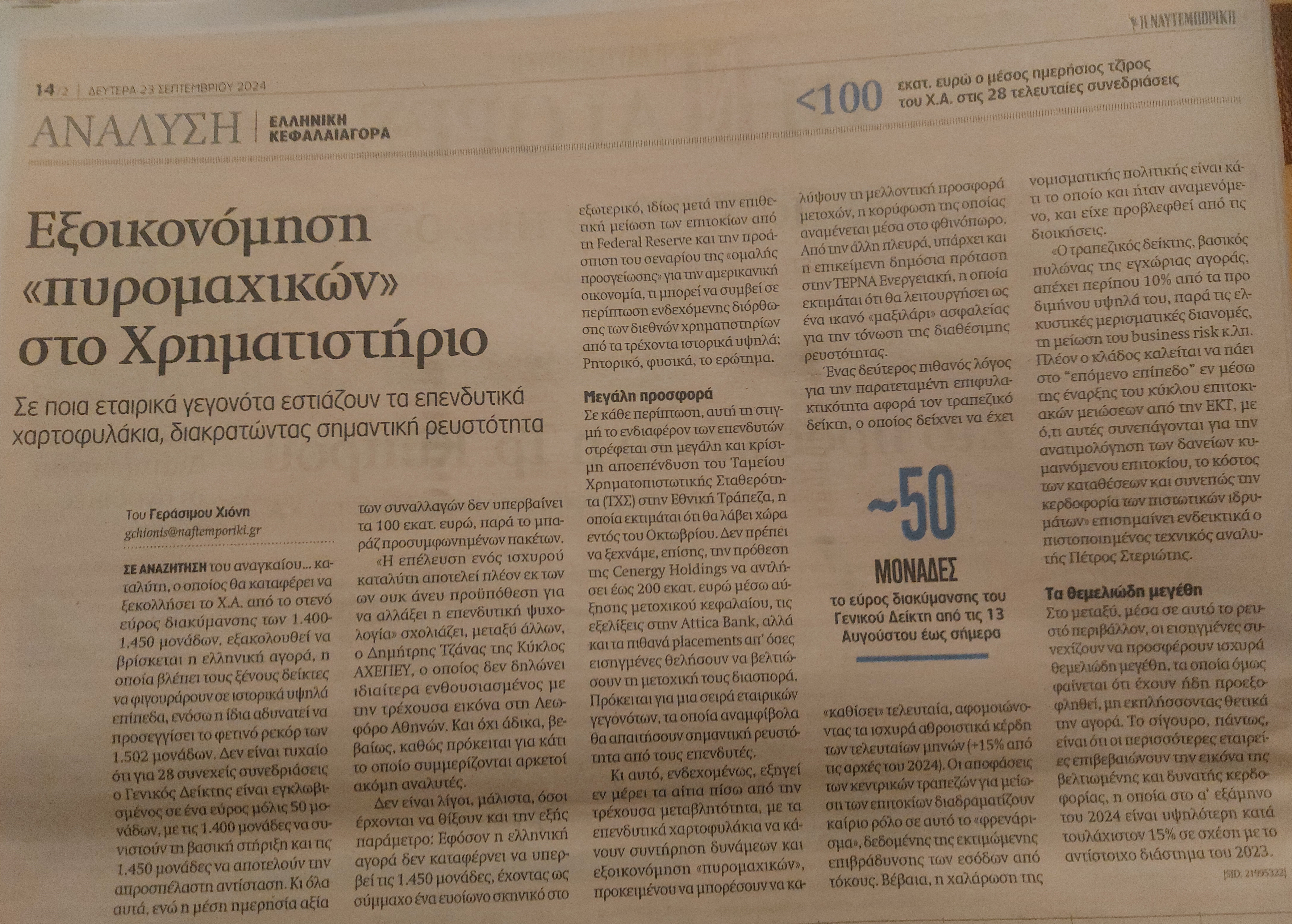 Δημοσιεύτηκε την 6 Οκτωβρίου 2024 «Ναυτεμπορική» (έντυπη έκδοση) (23/9/2024) Κοινοποίηση: Μοιραστείτε στο X(Ανοίγει σε νέο παράθυρο) Χ Mοιραστείτε στο Facebook(Ανοίγει σε νέο παράθυρο) Facebook Μου αρέσει! Φόρτωση...