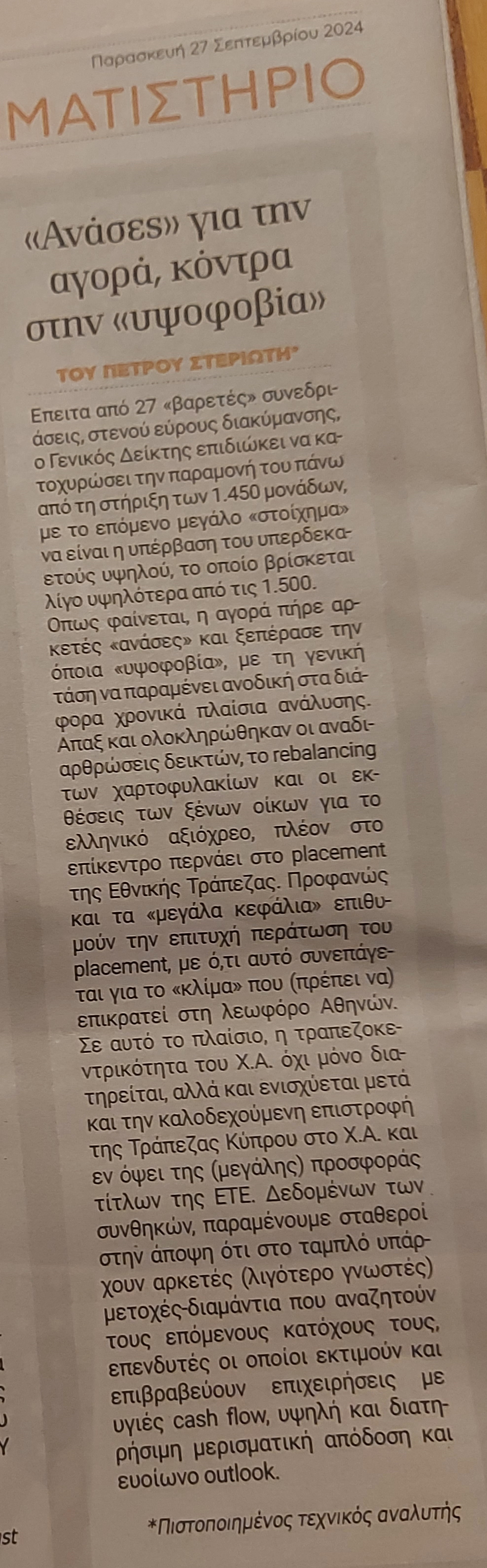 Δημοσιεύτηκε την 6 Οκτωβρίου 2024 Deal News (έντυπη έκδοση – 27/9/2024) Κοινοποίηση: Μοιραστείτε στο X(Ανοίγει σε νέο παράθυρο) Χ Mοιραστείτε στο Facebook(Ανοίγει σε νέο παράθυρο) Facebook Μου αρέσει! Φόρτωση...