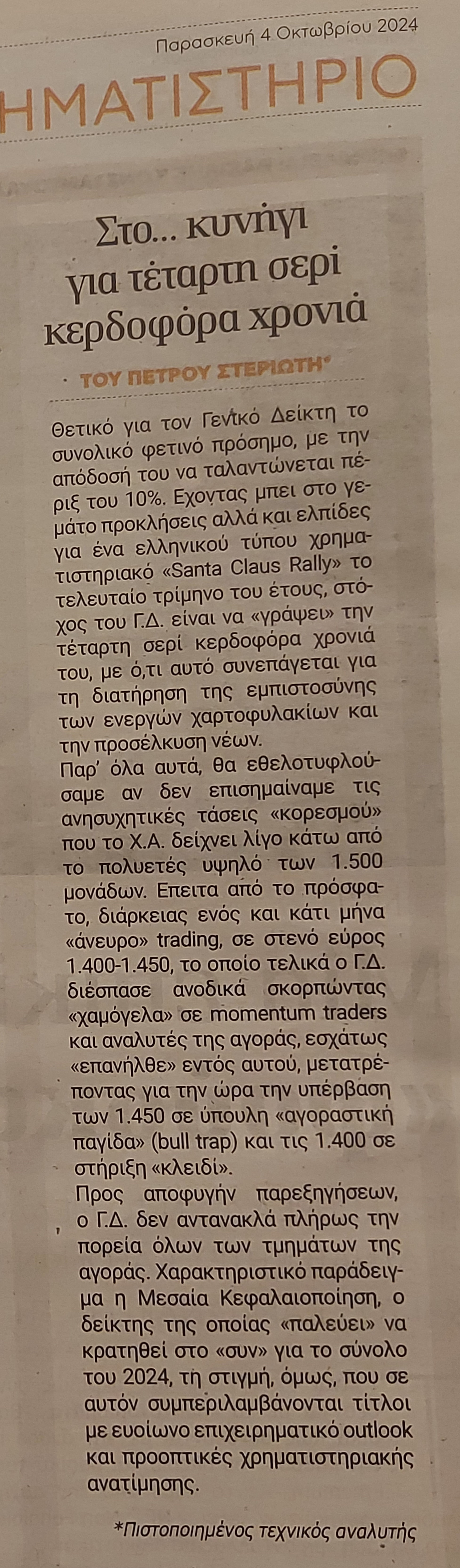 Δημοσιεύτηκε την 6 Οκτωβρίου 2024 Deal News (έντυπη έκδοση – 4/10/2024) Κοινοποίηση: Μοιραστείτε στο X(Ανοίγει σε νέο παράθυρο) Χ Mοιραστείτε στο Facebook(Ανοίγει σε νέο παράθυρο) Facebook Μου αρέσει! Φόρτωση...