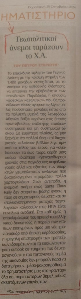 Δημοσιεύτηκε την 3 Νοεμβρίου 20249 Δεκεμβρίου 2024 Deal News (έντυπη έκδοση – 25/10/2024) Κοινοποίηση: Μοιραστείτε στο X(Ανοίγει σε νέο παράθυρο) Χ Mοιραστείτε στο Facebook(Ανοίγει σε νέο παράθυρο) Facebook Μου αρέσει! Φόρτωση...