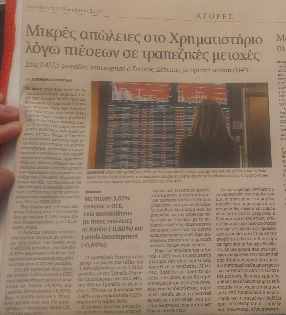 Δημοσιεύτηκε την 9 Δεκεμβρίου 2024 «Η Καθημερινή» (έντυπη έκδοση) (15/11/2024) Κοινοποίηση: Μοιραστείτε στο X(Ανοίγει σε νέο παράθυρο) Χ Mοιραστείτε στο Facebook(Ανοίγει σε νέο παράθυρο) Facebook Μου αρέσει! Φόρτωση...