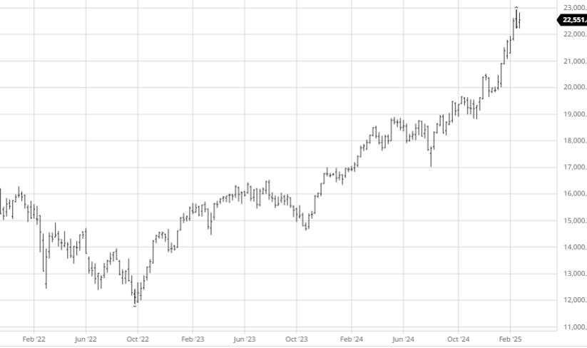 2. NASDAQ (μετά τις εκλογές των ΗΠΑ) Έχει απωλέσει τα κέρδη του “Trump trade” και έχει γυρίσει αρνητικός για το 2025.