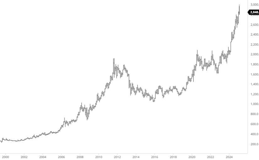 5. ΧΡΥΣΟΣ (2000-σήμερα) Κοντά στο ιστορικό ρεκόρ των 3.000δολ ανά ουγγιά.